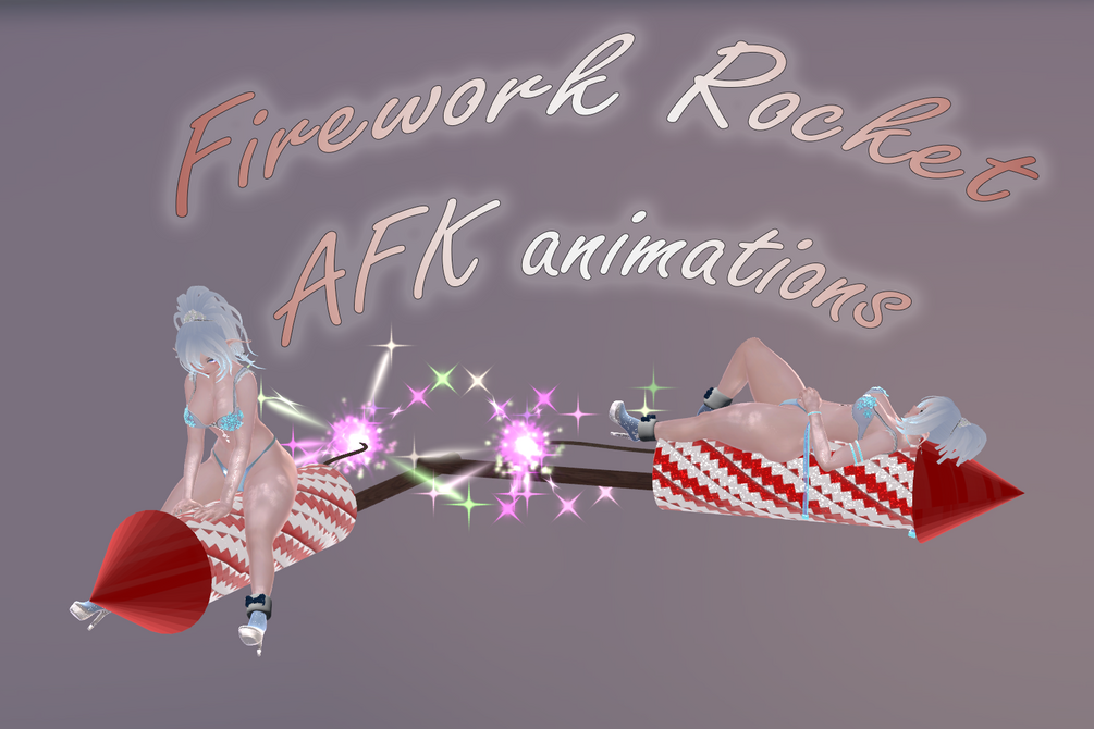 Animated AFKs / Poses that makes the avatar lay (and in this case) ontop of a Firework rocket and chill or sit on it and dangle the feet!