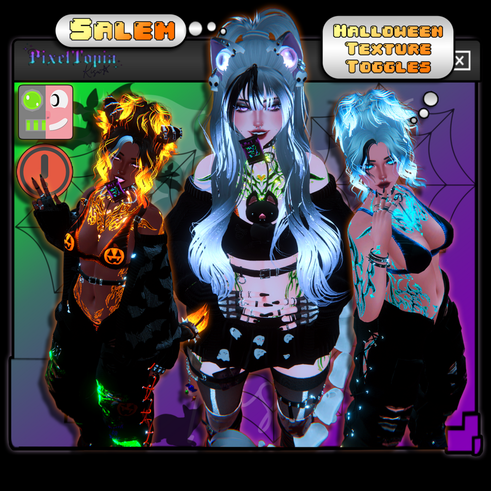 β.ππ. .ββββββββββββββββββββββββββββββββββββββββββββββββββββ Salem has that right amount of Halloween for anyone who don't want to dress up but still want to be in the spoopy mood! Salem also has toggles to remove Halloween specific textures so you can use her after Halloween as well! :D Don't forget about the working pumpkin Lantern, cool particles and FACE TRACKING !! ββββββββββββββββββββββββββββββββββββββββββββββββββ. .ππ.β