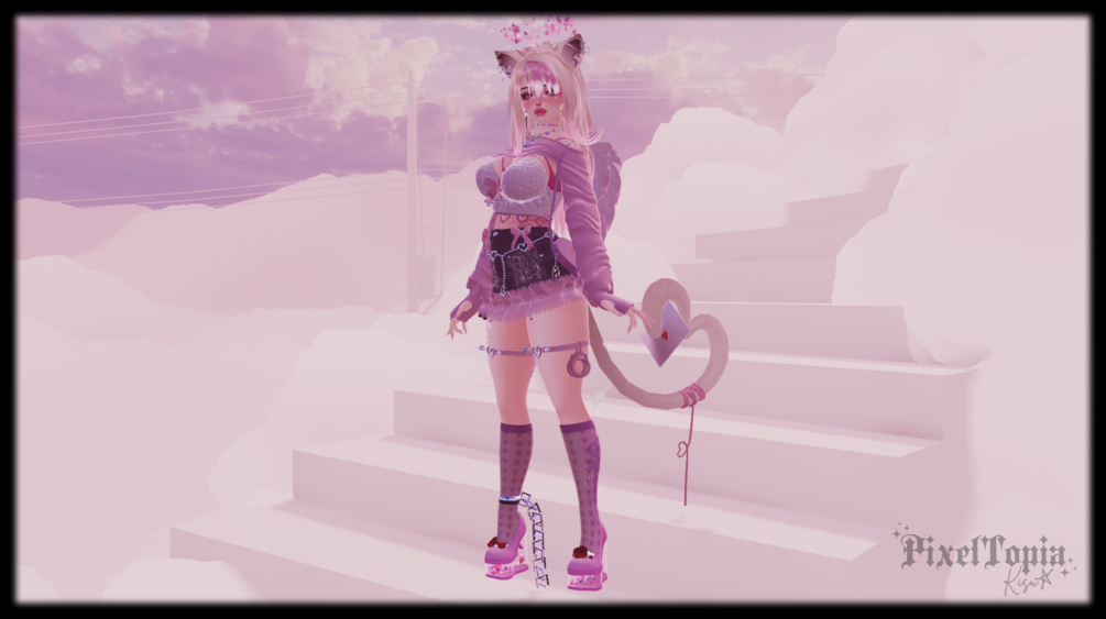 : ̗̀➛ Outfit 1 (skirt, panties, sweater, top, heart w wings necklace, hip chain Choker and thigh straps - Vinuzhka